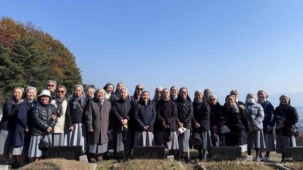 어떤 자매는 자기 동기 수녀님 묘앞에서 같이 사진을 찍는 모습도 있었지요.